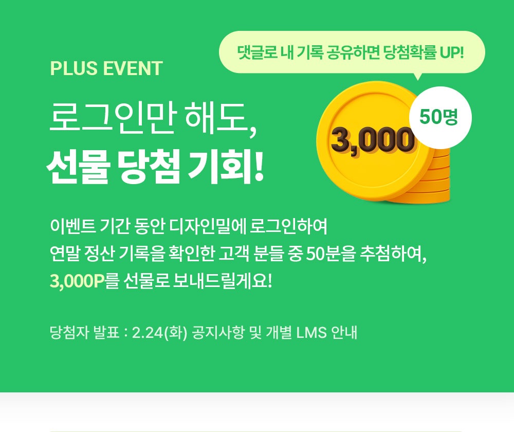 로그인만 해도 드리는 13월의 보너스! 디자인밀 연말정산 v.2025