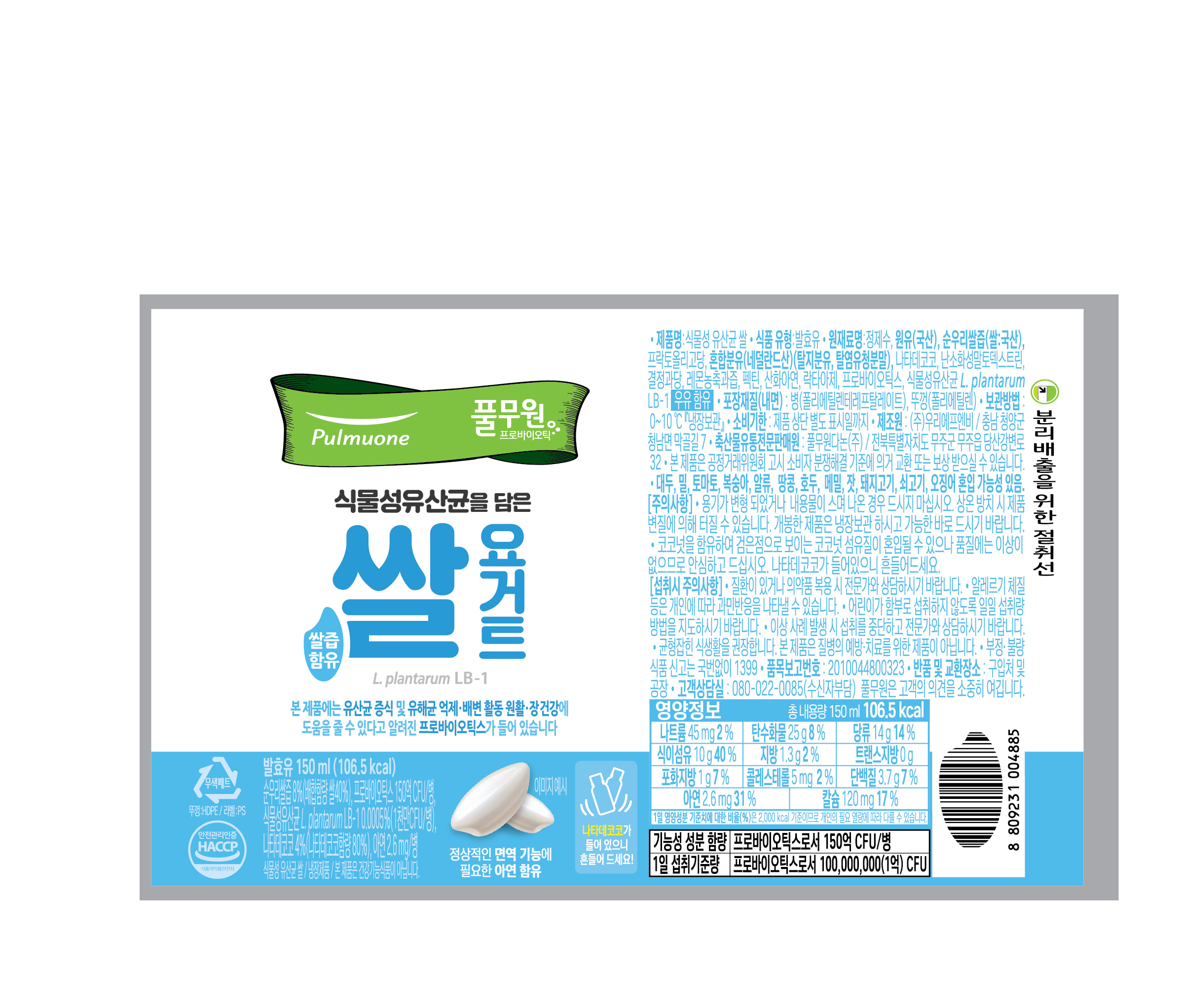 상품설명 상세정보 후기 (0) 기타안내 더보기 식물성유산균 쌀요거트 상세구성 이미지를 클릭하면, 더 자세한 정보를 확인하실 수 있습니다. 식물성유산균 쌀요거트 Prev Next 제품명 제품 포장 라벨 참조 식품유형 발효유 생산자 및 소재지 우리에프앤비 | 충남 청양군 청남면 막골길 7 (수입품의 경우 생산자, 수입자 및 제조국) 해당사항 없습니다. 제조연월일 사업자가 실물상품의 제조연월일을 일일이 추적∙관리하기 어려운 상품입니다. 제조연월일은 실물상품에 표기되어 있습니다. 소비기한 제조연월일로부터 10일까지 / 상품 발송일을 기준으로 소비기한이 3일 이상 남은 제품이 배송됩니다. 포장단위별 내용물의 용량(중량), 수량 150ml 원재료명 상세정보를 참고해주세요. 영양성분 상세정보를 참고해주세요. 유전자변형 식품에 해당하는 경우의 표시 해당사항 없습니다. 소비자 안전을 위한 주의사항 상세정보를 참고해주세요. 수입식품에 해당하는 경우 “수입식품안전관리 특별법에 따른 수입신고를 필함”의 문구 해당사항 없습니다. 소비자상담 관련 전화번호 풀무원녹즙 고객기쁨센터(080-800-0393) 총 0 건 포토후기 베스트리뷰순 최신순 후기 더보기 배송안내 주문취소 주문상품 첫배송일 3일 전 낮 12시까지 전체 취소가 가능합니다. (토,일 및 공휴일 제외) ※ 첫배송일이 화/수요일인 경우, 전주 금요일 낮 12시까지 취소가 필요합니다. 교환/반품안내 [반품 가능 조건]1. 단순변심, 주문착오의 경우 냉동/냉장/신선 즉섭섭취 상품은 재판매가 불가한 상품 특성 상 반품이 불가합니다. 2. 제품 하자의 경우 반드시 상품의 문제를 확인할 수 있는 사진을 첨부하여 반품 신청하셔야 합니다. *사진 첨부 시, 제품의 소비기한을 확인할 수 있는 사진 1장과 제품의 하자가 있는 부분에 대한 사진 1~2장 같이 첨부 (1) 냉동/냉장/신선식품 : 상품을 받은 날로부터 2일 이내 (2) 상온상품 : 상품을 받은 날로부터 3개월 이내 또는 사실을 알게 된 날로부터 30일 이내 ※ 반품 배송비는 디자인밀에서 부담하며 실물 확인 후 환불이 진행됩니다. [반품 신청 방법] 풀무원 고객기쁨센터로 접수 가능합니다. 임의로 반송하실 경우 환불 등의 처리가 지연될 수 있으므로 반송 전 꼭 고객센터와 확인 후 접수해주시기 바랍니다. ※ 전자상거래 등에서 소비자보호에 관한 법률에 따라 다음의 경우 청약철회가 제한될 수 있습니다. - 일부 주문맞춤 생산되는 상품 (디자인밀 식단형 상품) - 신선(과일,채소등)/냉장/냉동 상품에 대해 시간이 경과 되어 상품등의 가치가 현저히 감소한 경우 - 교환/반품 신청이 상품 수령한 날로부터 7일이 경과한 경우 - 고객님의 사용 또는 일부 소비에 의해 상품의 가치가 훼손된 경우 - 시간 경과에 따라 상품 등의 가치가 현저히 감소하여 재판매가 불가능한 경우 - 고객님이 상품 포장을 개봉하여 사용 또는 설치 완료되어 상품의 가치가 훼손된 경우 (단, 내용 확인을 위한 포장 개봉의 경우는 예외) - 구매한 상품의 구성품이 누락된 경우 (화장품 세트, 사은품 등) - 기타, 상품의 교환, 환불 및 상품 결함 등의 보상은 소비자분쟁해결기준(공정거래위원회 고시)에 의함 환불안내 1. 주문취소 시 결제 방법에 따른 환불 - 가상계좌 환불계좌 입금 - 실시간계좌이체 결제대행사 또는 환불계좌입금 - 카드결제 결제대행사를 통해 카드취소 2. 취소접수일로부터 환불이 완료될때까지 5-7일정도의 시간이 소요됩니다. ※ 환불 지연에 따른 배상금 지급 조건, 절차 등은 전자상거래 등에서의 소비자 보호에 관한 법률에 따라 처리합니다. 기타안내 부정 불량식품 신고는 국번 없이 1399 배송방법 가맹점배송 (각 지역 풀무원녹즙 가맹점) 배송비 무료 (대여용 보냉가방 배송) 첫 배송일 제품별로 주문일에 따른 첫 배달일이 다르오니 반드시 확인해주세요. 주문&변경 마감은 낮 12시입니다. (토,일,공휴일 제외) ※ 주문이 급증할 경우 조기마감되어 첫 배달일이 변경 될 수 있으며, 개별 안내드립니다. (문자 또는 알림톡) ※ 첫 주문시 가맹점의 모닝스텝이 배달정보 확인을 위해 고객님께 직접 연락드릴 수 있습니다. (전화 또는 문자) 배송시간 가맹점배송 가정 배달(주택/아파트) : 배달일 전날 12시~ 당일 오전 7시 사무실 배달(회사/공공기관/상가건물) : 배달 당일 오전 8시 ~ 오전 11시 ※ 악천후, 도로사정, 가맹점 상황(물량 급증, 현관출입 불가 등)에 따라 조기/지연 배달될 수 있습니다. 공휴일 배송안내 공휴일은 배송휴무입니다. - 주문시점에 종료일 뒤로 자동 연장 됩니다. 배송일정 변경 풀무원녹즙 상품의 부분취소 및 배송일 변경은 풀무원녹즙 고객센터 080-800-0393 를 통해 접수하실 수 있습니다. 기타 가맹점배송이 불가능한 지역인 경우, 부득이하게 주문이 취소 될 수 있으며 개별 안내드립니다.
