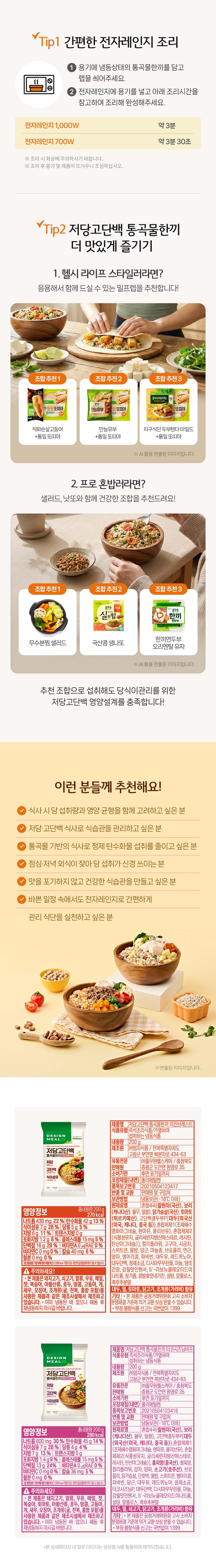 상품설명 상세정보 후기 (4) 기타안내 더보기 제품명 저당고단백통곡물한끼 치킨브레스트 /타코시즈닝비프 식품유형 즉석조리식품/가열하여섭취하는 냉동식품 생산자 및 소재지 (주)엄지식품 / 전북특별자치도 고창군 부안면 복분자로 434-63 (수입품의 경우 생산자, 수입자 및 제조국) 해당사항 없습니다. 제조연월일 제품뒷면하단기재 포장단위별 내용물의 용량(중량), 수량 200g 원재료명 상세페이지 참고해주세요. 영양성분 상세페이지 참고해주세요. 유전자변형 식품에 해당하는 경우의 표시 해당사항 없습니다. 소비자 안전을 위한 주의사항 이미 냉동된 바 있으니 해동 후 재냉동시키지 마시길 바랍니다. 수입식품에 해당하는 경우 (수입식품안전관리 특별법에 따른 수입신고를 필함)의 문구 해당사항 없습니다. 소비자상담 관련 전화번호 풀무원 고객기쁨센터 080-800-0434 유통전문판매원 (주)풀무원헬스케어/충청북도 증평군 도안면 원명로35 총 4 건 포토후기 베스트리뷰순 최신순 후기 더보기 배송안내 배송방법 냉동 택배배송 (롯데 일반 택배) 배송비 배송비 3,000원 별도 (4만원 이상 결제 시 무료배송) 배송기간 제품별로 출고처가 다르기 때문에 각각 배송 됩니다. 낮 12시까지 결제 완료 시 2일 후 배송 예정 (주말, 공휴일 제외) ※ 상기 일정은 택배사 사정에 따라 1~2일 차이가 있을 수 있습니다. 주문취소 1. 전체취소 ((가맹점배송)) 주문상품의 첫배송일 3일 전 낮 12시까지 전체 취소가 가능합니다. (토,일 및 공휴일 제외) ((택배배송)) 냉동/냉장/실온 택배 상품은 배송예정일 2일 전 낮 12시까지 전체취소 가능 ((원데이배송)) 주문상품의 배송일 3일 전 낮 12시까지 전체 취소가 가능합니다. (토,일 및 공휴일 제외) 2. 부분취소 ((가맹점배송)) 취소하는 요일과 시간에 따라 부분 취소가 가능합니다. (토,일 및 공휴일 제외) - 낮 12시 이전 취소 요청 시 : 3일 후 배송부터 부분취소 가능 - 낮 12시 이후 취소 요청 시 : 5일 후 배송부터 부분취소 가능 ((냉동/실온 택배배송)) 결제 완료 후 취소 시점에 따라 부분취소가 가능합니다. (주말, 공휴일 제외) - 낮 12시 이전 결제완료 후 취소 요청 시 : 주문마감되어 출고준비 상태로 취소 불가 - 낮 12시 이후 결제완료 후 취소 요청 시 : 익일 낮 12시까지 취소 접수 가능 취소하는 요일과 시간에 따라 부분 취소가 가능합니다. (토,일 및 공휴일 제외) ((원데이배송)) - 낮 12시 이전 취소 요청 시, 3일 후 배송 건부터 부분취소 가능 - 낮 12시 이후 취소 요청 시 : 영업일 기준 4일 후 배송 건부터 부분취소 가능 3. 공통 주문 시 쿠폰을 사용하였을 경우 ‘전체취소’ 시에만 원복 됩니다. 교환/반품안내 교환/반품 신청은 실온 택배배송 상품만 가능합니다. * 상품 불량 외 택배 포장 파손은 교환/반품 사유가 되지 않습니다. - 고객님의 변심에 의한 교환/반품의 경우 반송 택배비를 고객님께서 부담하셔야 합니다. (무료배송 시 왕복택배비) - 임의로 반송하실 경우 환불 등의 처리가 지연될 수 있으므로 반송 전 꼭 1:1문의 또는 고객센터로 접수해 주시기 바랍니다. [반품 가능 조건] 1. 단순변심, 주문착오의 경우 (1) 냉동/냉장/신선 즉섭섭취 상품은 재판매가 불가한 상품 특성 상 반품이 불가합니다. (2) 상온상품은 배송완료 후 7일 이내에 반품 신청이 가능합니다. ※ 고객의 단순변심 또는 주문착오로 인한 반품건의 왕복 배송비는 고객님 부담이며, 상품에 따라 상이 할 수 있습니다. (주문 시 배송비를 결제한 경우 반품 배송비만 부담) ※ 반품한 경우 결제 시 사용 한 쿠폰은 재발행 되지 않습니다. 2. 제품 하자의 경우 반드시 상품의 문제를 확인할 수 있는 사진을 첨부하여 반품 신청하셔야 합니다. *사진 첨부 시, 제품의 유통기한 또는 소비기한을 확인할 수 있는 사진 1장과 제품의 하자가 있는 부분에 대한 사진 1~2장 같이 첨부 (1) 냉동/냉장/신선식품 : 상품을 받은 날로부터 2일 이내 (2) 상온상품 : 상품을 받은 날로부터 3개월 이내 또는 사실을 알게 된 날로부터 30일 이내 ※ 반품 배송비는 디자인밀에서 부담하며 실물 확인 후 환불이 진행됩니다. [반품 신청 방법] 디자인밀 1:1 문의 또는 풀무원 고객기쁨센터로 접수 가능합니다. 임의로 반송하실 경우 환불 등의 처리가 지연될 수 있으므로 반송 전 꼭 고객센터와 확인 후 접수해주시기 바랍니다. ※ 전자상거래 등에서 소비자보호에 관한 법률에 따라 다음의 경우 청약철회가 제한될 수 있습니다. - 일부 주문맞춤 생산되는 상품 (디자인밀 식단형 상품) - 신선(과일,채소등)/냉장/냉동 상품에 대해 시간이 경과 되어 상품등의 가치가 현저히 감소한 경우 - 교환/반품 신청이 상품 수령한 날로부터 7일이 경과한 경우 - 고객님의 사용 또는 일부 소비에 의해 상품의 가치가 훼손된 경우 - 시간 경과에 따라 상품 등의 가치가 현저히 감소하여 재판매가 불가능한 경우 - 고객님이 상품 포장을 개봉하여 사용 또는 설치 완료되어 상품의 가치가 훼손된 경우 (단, 내용 확인을 위한 포장 개봉의 경우는 예외) - 구매한 상품의 구성품이 누락된 경우 (화장품 세트, 사은품 등) - 기타, 상품의 교환, 환불 및 상품 결함 등의 보상은 소비자분쟁해결기