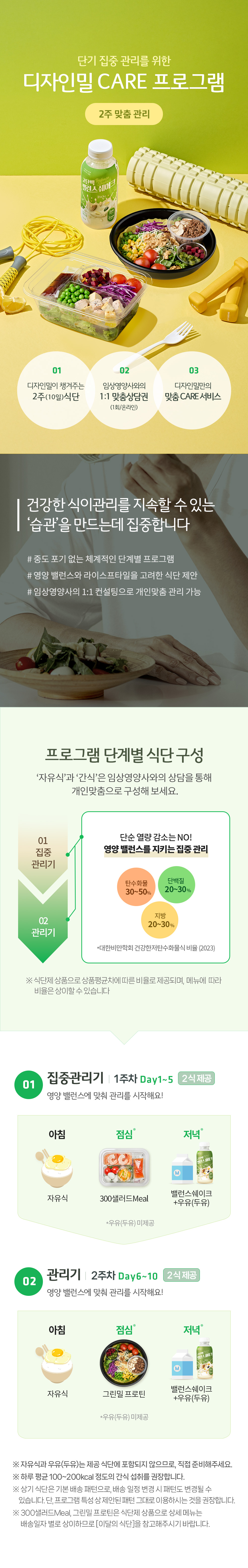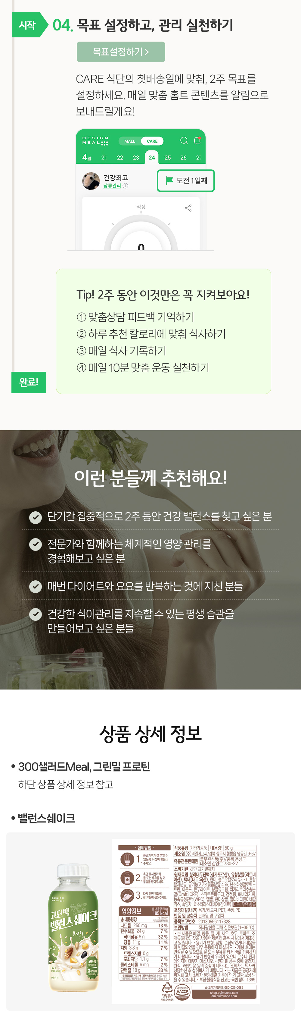 상품설명 상세정보 후기 (5) 기타안내 더보기 300샐러드Meal 상세구성 메뉴 사진을 클릭하면, 더 자세한 정보를 확인하실 수 있습니다. 그릴드베지두부텐더샐러드 숯불소이불고기유부채샐러드 베이컨&그릴드베지샐러드 보코치니단호박샐러드 칠리빈닭가슴살소시지샐러드 바싹불고기귀리샐러드 닭가슴살고구마샐러드 리코타통밀크레커샐러드 비트무샐러드 당근귀리무스샐러드 적채렌틸콩무스샐러드 Prev Next 그린밀프로틴 상세구성 메뉴 사진을 클릭하면, 더 자세한 정보를 확인하실 수 있습니다. 비트라페&단호박오리구이 적채라페&닭가슴살고구마 칠리빈&통옥수수닭가슴살소세지 당근라페&불고기두부구이 아보카도&달콤닭가슴살 연두부무스&숯불소이불고기 비트무&에그피자 오이타르&닭가슴살 풀드포크&홀그레인양배추 고추라페&고추장제육 양파라페&도토리묵버무리 Prev Next 식품의 유형 상세정보참고(제품별 상이) 제조원 및 소재지 상세정보참고(제품별 상이) 유통전문 판매원 및 소재지 상세정보참고(제품별 상이) 수입품의 경우 수입자 해당사항 없음 제조일자 300샐러드Meal / 그린밀프로틴: 상품 발송일 기준, 최대 2일전 생산된 제품이 배달됩니다. 그 외 상품은 상품 발송일을 기준으로 잔여 소비기한이 아래 일자 이상 남은 상품으로 배송됩니다. 밸런스쉐이크: 3개월 소비기한 300샐러드밀,그린밀 프로틴:제조시간으로부터 72시간 이내 그 외 상품: 상세페이지 참고 중량 및 구성 상세정보참고(제품별 상이) 원재료 및 함량 상세정보참고(제품별 상이) 유전자 재조합식품 여부 해당사항 없음 수입식품 및 식품위생법에 따른 수입신고 여부 해당사항 없음 고객상담실 연락처 080-800-0434(수신자부담) 식단구성 ※ 자유식과 우유(두유)는 제공 식단에 포함되지 않으므로, 직접 준비해주세요. ※ 하루 평균 100~200kcal 정도의 간식 섭취를 권장합니다. 배송메뉴 ※ 300샐러드Meal, , 그린밀 프로틴은 식단제 상품으로 상세 메뉴는 배송일자 별로 상이하므로, [이달의 식단]을 참고해주시기 바랍니다. ※ 식단제 상품으로 상품평균차에 따른 비율로 제공되며, 메뉴에 따라 비율은 상이할 수 있습니다. 유의사항 1 프로그램 식단의 일부 주차는 열량이 낮게 설계되어 임산부, 수유부는 섭취를 권장하지 않습니다. 디자인밀은 1일 1메뉴를 제공하므로, 해당 배송일에 다른 메뉴로 대체는 불가능합니다. 유의사항 2 배송일 중 원하지 않는 메뉴가 포함되는 경우, 로그인 후 마이페이지 - 주문내역 - 배송일정 변경으로 들어가시면 직접 배송일 변경이 가능합니다. 단, 프로그램 특성 상 제안된 패턴 그대로 이용하시는 것을 권장합니다. 유의사항 3 본 상품은 맞춤상담을 위한 상담권 1개가 필수 구성으로 포함되어있습니다. 상담권 이용은 선택사항이나, 상담권만 환불은 불가합니다. (상담권은 어떠한 경우에도 현금 환불되지 않습니다.) 총 5 건 포토후기 베스트리뷰순 최신순 후기 더보기 배송안내 배송방법 새벽택배 (수도권, 충청 일부 지역) 또는 가맹점배송 (각 지역 풀무원녹즙 가맹점) 배송비 무료 (종이박스 배송) 첫 배송일 제품별로 주문일에 따른 첫 배달일이 다르오니 반드시 확인해주세요. 주문&변경 마감은 낮 12시입니다. (토,일,공휴일 제외) ※ 주문이 급증할 경우 조기마감되어 첫 배달일이 변경 될 수 있으며, 개별 안내드립니다. (문자 또는 알림톡) ※ 첫 주문시 가맹점의 모닝스텝이 배달정보 확인을 위해 고객님께 직접 연락드릴 수 있습니다. (전화 또는 문자) 배송형태 1. 새벽택배 2일치 식단이 한 번에 배송됩니다. 2. 가맹점배송 1일치 식단이 배송됩니다. 배송시간 1. 새벽택배 오전 7시 이전 도착 예정 2. 가맹점배송 가정 배달(주택/아파트) : 배달일 전날 12시~ 당일 오전 7시 사무실 배달(회사/공공기관/상가건물) : 배달 당일 오전 8시 ~ 오전 11시 ※ 악천후, 도로사정, 가맹점 상황(물량 급증, 현관출입 불가 등)에 따라 조기/지연 배달될 수 있습니다. 공휴일 배송안내 공휴일은 배송휴무입니다. - 칼로리/영양균형식 : 주문시점에 종료일 뒤로 자동 연장 됨 기타 가맹점배송 또는 새벽택배 배송이 불가능한 지역인 경우, 부득이하게 주문이 취소 될 수 있으며 개별 안내드립니다. 주문취소 1. 전체취소 ((가맹점배송)) 주문상품의 첫배송일 3일 전 낮 12시까지 전체 취소가 가능합니다. (토,일 및 공휴일 제외) ((택배배송)) 냉동/냉장/실온 택배 상품은 배송예정일 2일 전 낮 12시까지 전체취소 가능 ((원데이배송)) 주문상품의 배송일 3일 전 낮 12시까지 전체 취소가 가능합니다. (토,일 및 공휴일 제외) 2. 부분취소 ((가맹점배송)) 취소하는 요일과 시간에 따라 부분 취소가 가능합니다. (토,일 및 공휴일 제외) - 낮 12시 이전 취소 요청 시 : 3일 후 배송부터 부분취소 가능 - 낮 12시 이후 취소 요청 시 : 5일 후 배송부터 부분취소 가능 ((냉동/실온 택배배송)) 결제 완료 후 취소 시점에 따라 부분취소가 가능합니다. (주말, 공휴일 제외) - 낮 12시 이전 결제완료 후 취소 요청 시 : 주문마감되어 출고준비 상태로 취소 불가 - 낮 12시 이후 결제완료 후 취소 요청 시 : 익일 낮 12시까지 취소 접수 가능 취소하는 요일과 시간에 따라 