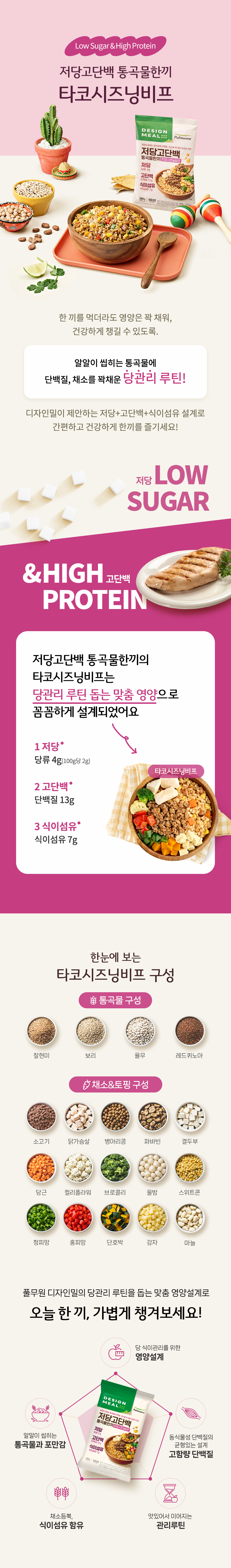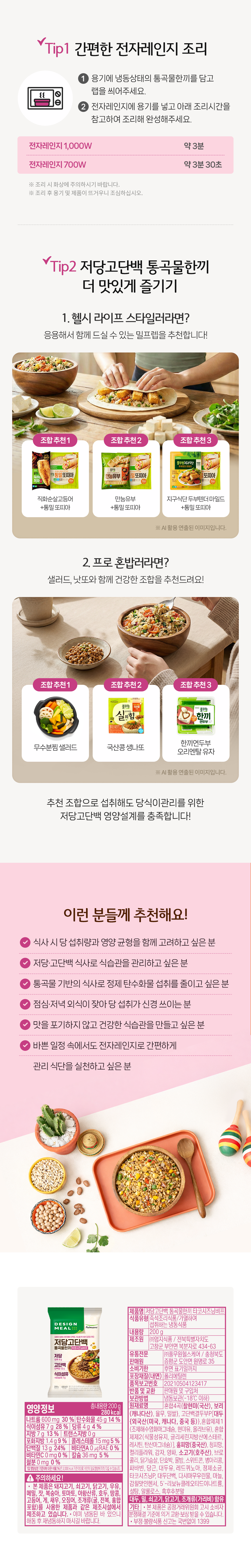상품설명 상세정보 후기 (0) 기타안내 더보기 제품명 저당고단백통곡물한끼 타코시즈닝비 식품유형 즉석조리식품/가열하여섭취하는 냉동식품 생산자 및 소재지 (주)엄지식품 / 전북특별자치도 고창군 부안면 복분자로 434-63 (수입품의 경우 생산자, 수입자 및 제조국) 해당사항 없습니다. 제조연월일 제품뒷면하단기재 포장단위별 내용물의 용량(중량), 수량 200g 원재료명 상세페이지 참고해주세요. 영양성분 상세페이지 참고해주세요. 유전자변형 식품에 해당하는 경우의 표시 해당사항 없습니다. 소비자 안전을 위한 주의사항 이미 냉동된 바 있으니 해동 후 재냉동시키지 마시길 바랍니다. 수입식품에 해당하는 경우 (수입식품안전관리 특별법에 따른 수입신고를 필함)의 문구 해당사항 없습니다. 소비자상담 관련 전화번호 풀무원 고객기쁨센터 080-800-0434 유통전문판매원 (주)풀무원헬스케어/충청북도 증평군 도안면 원명로35 총 0 건 포토후기 베스트리뷰순 최신순 후기 더보기 배송안내 배송방법 냉동 택배배송 (롯데 일반 택배) 배송비 배송비 3,000원 별도 (4만원 이상 결제 시 무료배송) 배송기간 제품별로 출고처가 다르기 때문에 각각 배송 됩니다. 낮 12시까지 결제 완료 시 2일 후 배송 예정 (주말, 공휴일 제외) ※ 상기 일정은 택배사 사정에 따라 1~2일 차이가 있을 수 있습니다. 주문취소 1. 전체취소 ((가맹점배송)) 주문상품의 첫배송일 3일 전 낮 12시까지 전체 취소가 가능합니다. (토,일 및 공휴일 제외) ((택배배송)) 냉동/냉장/실온 택배 상품은 배송예정일 2일 전 낮 12시까지 전체취소 가능 ((원데이배송)) 주문상품의 배송일 3일 전 낮 12시까지 전체 취소가 가능합니다. (토,일 및 공휴일 제외) 2. 부분취소 ((가맹점배송)) 취소하는 요일과 시간에 따라 부분 취소가 가능합니다. (토,일 및 공휴일 제외) - 낮 12시 이전 취소 요청 시 : 3일 후 배송부터 부분취소 가능 - 낮 12시 이후 취소 요청 시 : 5일 후 배송부터 부분취소 가능 ((냉동/실온 택배배송)) 결제 완료 후 취소 시점에 따라 부분취소가 가능합니다. (주말, 공휴일 제외) - 낮 12시 이전 결제완료 후 취소 요청 시 : 주문마감되어 출고준비 상태로 취소 불가 - 낮 12시 이후 결제완료 후 취소 요청 시 : 익일 낮 12시까지 취소 접수 가능 취소하는 요일과 시간에 따라 부분 취소가 가능합니다. (토,일 및 공휴일 제외) ((원데이배송)) - 낮 12시 이전 취소 요청 시, 3일 후 배송 건부터 부분취소 가능 - 낮 12시 이후 취소 요청 시 : 영업일 기준 4일 후 배송 건부터 부분취소 가능 3. 공통 주문 시 쿠폰을 사용하였을 경우 ‘전체취소’ 시에만 원복 됩니다. 교환/반품안내 교환/반품 신청은 실온 택배배송 상품만 가능합니다. * 상품 불량 외 택배 포장 파손은 교환/반품 사유가 되지 않습니다. - 고객님의 변심에 의한 교환/반품의 경우 반송 택배비를 고객님께서 부담하셔야 합니다. (무료배송 시 왕복택배비) - 임의로 반송하실 경우 환불 등의 처리가 지연될 수 있으므로 반송 전 꼭 1:1문의 또는 고객센터로 접수해 주시기 바랍니다. [반품 가능 조건] 1. 단순변심, 주문착오의 경우 (1) 냉동/냉장/신선 즉섭섭취 상품은 재판매가 불가한 상품 특성 상 반품이 불가합니다. (2) 상온상품은 배송완료 후 7일 이내에 반품 신청이 가능합니다. ※ 고객의 단순변심 또는 주문착오로 인한 반품건의 왕복 배송비는 고객님 부담이며, 상품에 따라 상이 할 수 있습니다. (주문 시 배송비를 결제한 경우 반품 배송비만 부담) ※ 반품한 경우 결제 시 사용 한 쿠폰은 재발행 되지 않습니다. 2. 제품 하자의 경우 반드시 상품의 문제를 확인할 수 있는 사진을 첨부하여 반품 신청하셔야 합니다. *사진 첨부 시, 제품의 유통기한 또는 소비기한을 확인할 수 있는 사진 1장과 제품의 하자가 있는 부분에 대한 사진 1~2장 같이 첨부 (1) 냉동/냉장/신선식품 : 상품을 받은 날로부터 2일 이내 (2) 상온상품 : 상품을 받은 날로부터 3개월 이내 또는 사실을 알게 된 날로부터 30일 이내 ※ 반품 배송비는 디자인밀에서 부담하며 실물 확인 후 환불이 진행됩니다. [반품 신청 방법] 디자인밀 1:1 문의 또는 풀무원 고객기쁨센터로 접수 가능합니다. 임의로 반송하실 경우 환불 등의 처리가 지연될 수 있으므로 반송 전 꼭 고객센터와 확인 후 접수해주시기 바랍니다. ※ 전자상거래 등에서 소비자보호에 관한 법률에 따라 다음의 경우 청약철회가 제한될 수 있습니다. - 일부 주문맞춤 생산되는 상품 (디자인밀 식단형 상품) - 신선(과일,채소등)/냉장/냉동 상품에 대해 시간이 경과 되어 상품등의 가치가 현저히 감소한 경우 - 교환/반품 신청이 상품 수령한 날로부터 7일이 경과한 경우 - 고객님의 사용 또는 일부 소비에 의해 상품의 가치가 훼손된 경우 - 시간 경과에 따라 상품 등의 가치가 현저히 감소하여 재판매가 불가능한 경우 - 고객님이 상품 포장을 개봉하여 사용 또는 설치 완료되어 상품의 가치가 훼손된 경우 (단, 내용 확인을 위한 포장 개봉의 경우는 예외) - 구매한 상품의 구성품이 누락된 경우 (화장품 세트, 사은품 등) - 기타, 상품의 교환, 환불 및 상품 결함 등의 보상은 소비자분쟁해결기준(공정거래위원
